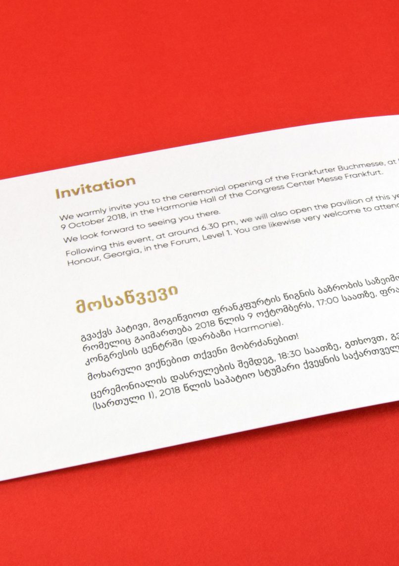Ehrengast in diesem Jahr war Georgien. Da die neue Hausschrift jedoch keine georgischen Zeichen enthält, musste eine passende Alternative gefunden werden, die sich möglichst nahtlos in das Schriftbild einfügt.