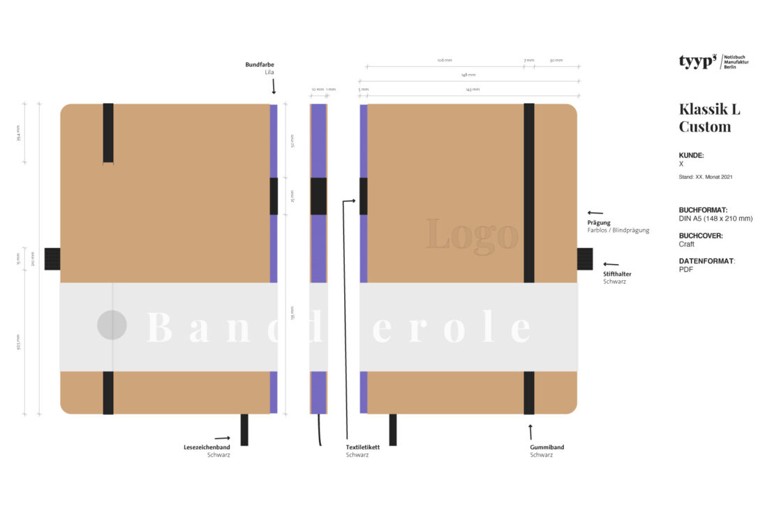 Neben den bewährten Papeterie-Produkten aus dem Onlineshop fertigt die Berliner Notizbuch-Manufaktur tyyp auf Anfrage auch individualisierte Marken-Notizbücher und Mappen für Firmenkunden an. Das eigens entwickelte Modulsystem für Materialien ermöglicht hierbei die Zusammenstellung unzähliger Varianten, die mit Logo-Veredelungen, Sonderseiten und diversen Add-Ons abgerundet werden können.