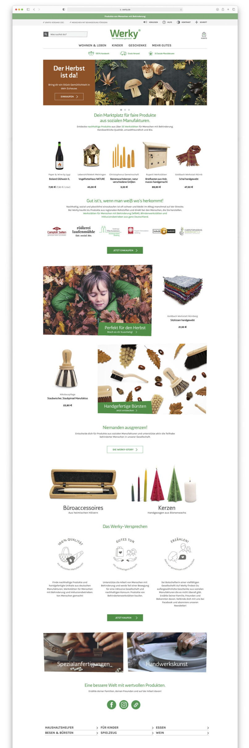 Werky ist ein Marktplatz mit über 50 Onlineshops von Werkstätten für Menschen mit Behinderung (WfbM).